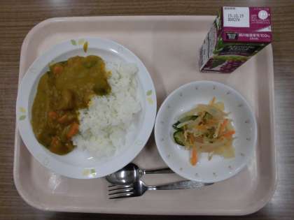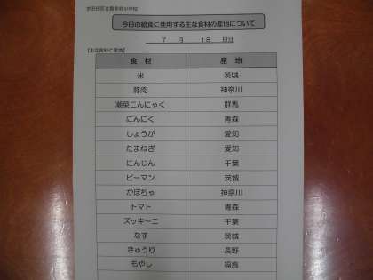 今日は1学期最後の給食です!ピーマン、トマト、なす、ズッキーニ、かぼちゃ…とみずみずしい夏野菜がたっぷり入ったカレーでした。