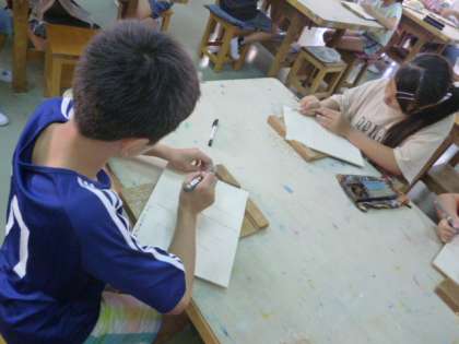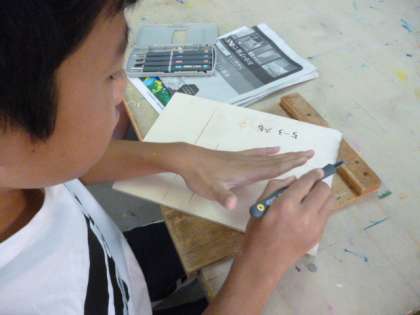 直線彫りの練習からスタートして、次に三角形を彫ることをしました。