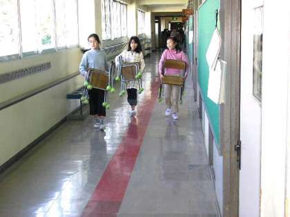 明日から新学期が始まります。今日は、6年生が各教室の机の移動や掃除をしてくれました。(4月5日)