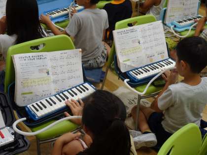 鍵盤ハーモニカで「山のポルカ」という曲を演奏しました。手の移動があり、難しい曲ですが何度も練習することで手が素早く、正確に動き、きれいな音で演奏できるようになってきました。上手に演奏できるようになると嬉しそうな表情を見せていました。