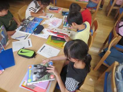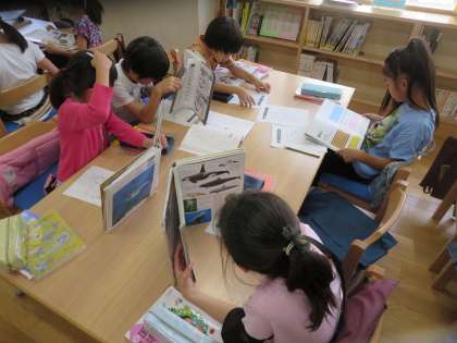 子供たちは、自分の調べたい事柄を目次や索引を使って調べました。