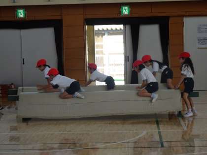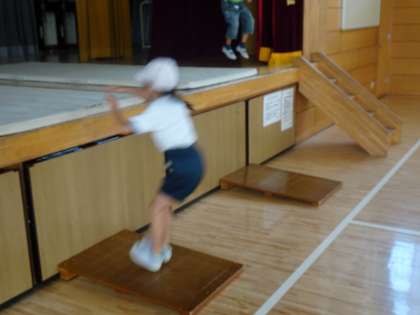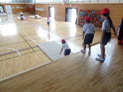 体育では、プールでの「水あそび」の学習が終わり、「とびばこあそび」の学習が始まりました。様々な場を用意して、サーキットに取り組みました。