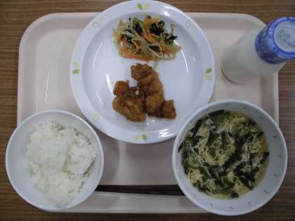 9月最後の給食は中華の献立でした!ユーリンチーは、油で揚げた鶏肉に、長ねぎがたっぷり入ったしょうゆベースのたれをかけていただきます。今日は少しだけ酸味をきかせたのでごはんもすすみましたね!子どもたちからも大好評でした!