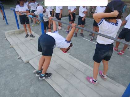 体育(3年生) 公開日 2019/10/02 更新日 2019/10/02 3年生 10月1日 体育では鉄棒に取り組んでいます。 各クラスで自分の力にあった技を練習したり友達同士で補助に入り助け合ったりしながら、学習を進めています。 鉄棒の学習が終わるころには、できる技が増えていることでしょう。 3年