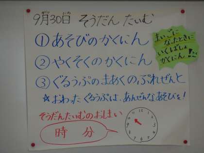 遠足(2年生) 公開日 2019/10/03 更新日 2019/10/03 2年生 遠足に向けて、最後の打ち合わせをしました。2年生が1年生に遊びや約束を伝えました。また、作成したシンボルマークをプレゼントしました。シンボルマークは、遠足当日リュックにつけてきます。素早く整列させたり、1年生に優しく声をかけたりするなど、さらにお兄さん・お姉さんらしくなってきました。遠足を楽しみにしているようです。 9月30日