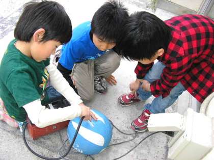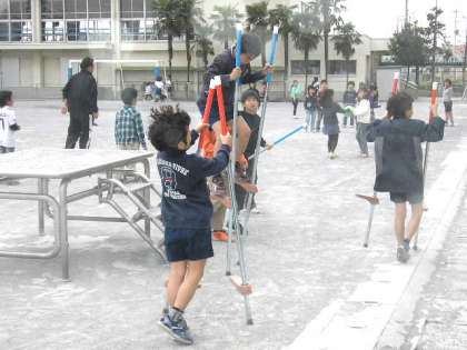 休み時間に使ったボールや一輪車、竹馬は自分たちで元の場所に片付けています。(4月8日)