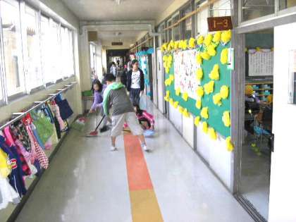 1年生の教室掃除(6年生) 公開日 2011/04/11 更新日 2011/04/11 6年生 1年生の教室や廊下の掃除を行いました。今度は、1年生と一緒に掃除をしながらやり方を教えていきます。(4月11日)