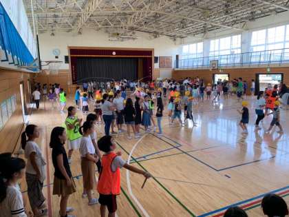 9/19の体育朝会では、長縄に取り組みました。各クラスごと3分間で何回跳べたか計測しました。次回10/25の体育朝会でも同じように計測するので、各クラスで設定した目標回数を達成できるよう、練習に励んでいます。