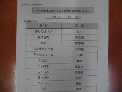 10月11日の給食 公開日 2019/10/11 更新日 2019/10/11 その他の教育活動 (今日の給食) ・あしたばパン ・ラザニア ・えだまめサラダ ・牛乳 今日は給食試食会でした!73名の方に参加していただき、給食の栄養や給食室の動きなどをお話しました。配膳や受付のお手伝いをしていただいた方々、ありがとうございました。 皆さんにおいしく召し上がっていただけたならうれしいです!