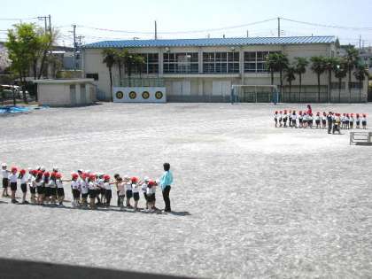 校庭で並び方の練習をしました。みんな先生の話をしっかりと聞いていました。(4月12日)