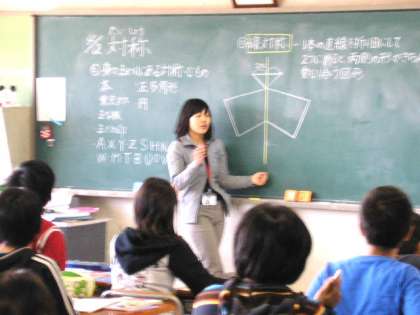新学習指導要領にもりこまれた対称の学習をスタートしました。今日は、線対称の学習をしました。(4月12日)