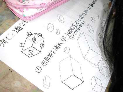 今日は、新学期初めての図工でした。立体の描き方を学習しました。(4月12日)