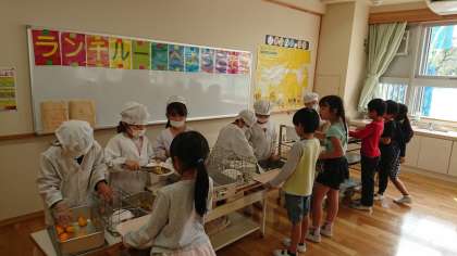 いつもと違う場所で食べる給食は、いつもよりおいしく感じました。
