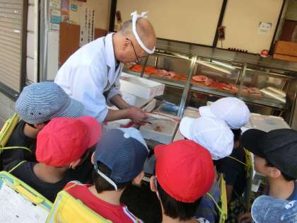 生活科・町たんけん(2年生) 公開日 2019/10/24 更新日 2019/10/24 2年生 生活科の学習で町たんけんをしました。肉屋、魚屋などの自分が選んだ学校の近くの場所に行きました。質問をするときには、丁寧な言葉づかいで話すように心がけました。質問したり、見たりして、新しい発見がたくさんあり、自分が選んだ場所にさらに興味をもったようです。 町たんけんにご協力いただきましたみなさん ありがとうございました。