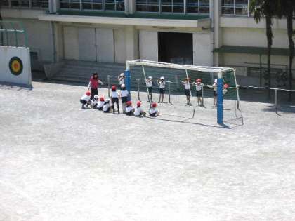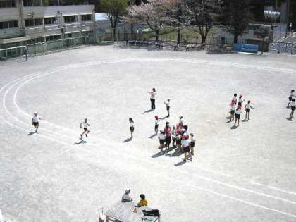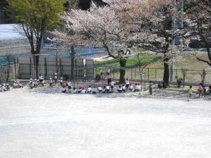 各クラスが校庭で体育をしました。うんていや鉄棒、徒競走をしました。(4月14日)