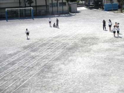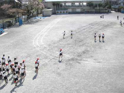 運動会に向けて徒競走のタイムをとりました。(4月14日)