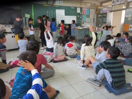 子供たちは、『ちびっこカムのぼうけん』という本を読み、その内容から問題を作り互いに出し合いました。