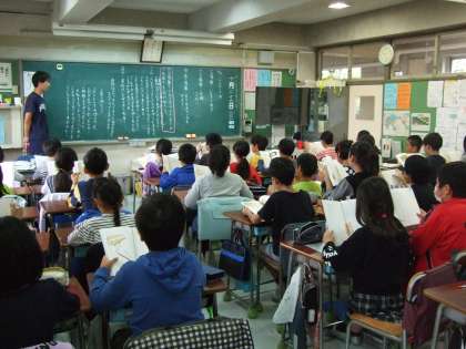 今、4年生は国語で「ごんぎつね」の学習をしています。いたずらばかりしている小ぎつねの「ごん」の気持ちが、あることをきっかけに変化していくことを読み取っていきます。そのためにも音読はとても大切な学習です。語のまとまりに気を付けたり、場面を意識して様子が分かるように工夫したりして読むようにしています。(10月29日)