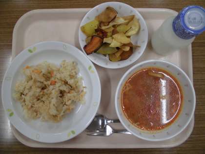 今日の野菜チップスには、いつものにんじん、じゃがいも、さつまいもの他にかぼちゃを使いました。かぼちゃは、かぜを予防するビタミンAやビタミンC、さらに食物せんいもたっぷりです!
