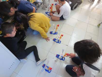 実験結果から、【風が強いほど、風車が速く回る】【風が強いほど、風車の軸の手ごたえも強くなる】といったことが分かりました。