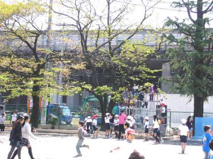 今日は、暖かくなり、校庭では友だちと楽しく遊んでいました。(4月20日)