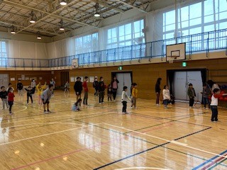 体育館で、玉入れとだるまさんが転んだをしました。