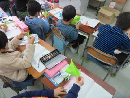 本日は、折り紙を使って正三角形を作ることに挑戦しました。