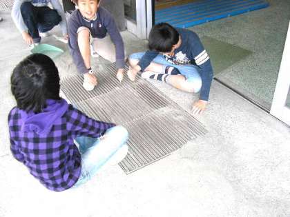 清掃の時間 公開日 2011/04/25 更新日 2011/04/23 その他の教育活動 給食の後、クラスごとに決められた場所を清掃しています。みんな自分たちが使っている場所をていねいに掃除しています。(4月22日)
