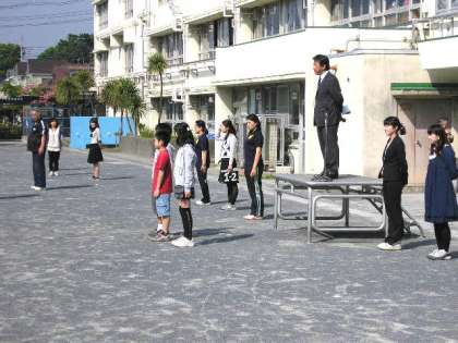 毎週、6年生の挨拶から朝会が始まります。(4月25日)