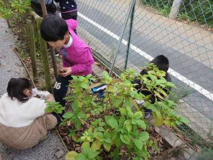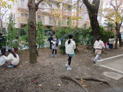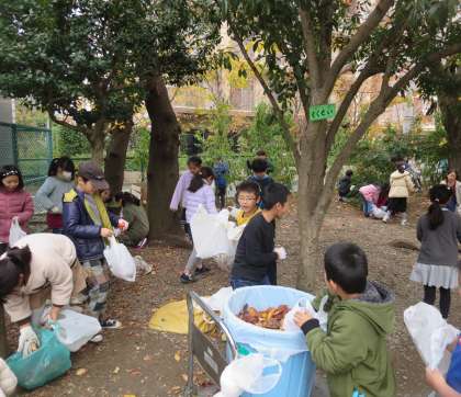 奉仕活動の一環で、喜多見小学校敷地内の落ち葉拾いを行いました。
