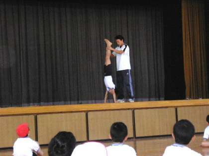 体育(5年生) 公開日 2011/04/29 更新日 2011/04/29 5年生 学年で組体操の練習をしました。1人技と2人技を中心に練習しました。補助倒立の練習ではコツを覚えてできるようになってきました。(4月28日)