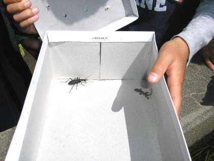 あたたかくなって 公開日 2011/04/29 更新日 2011/04/29 その他の教育活動 あたたかさに誘われて、虫たちも活動を始めました。今日は、子どもがつかまえた虫を箱に入れて学校に持ってきました。(4月28日)