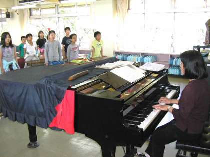 背筋をのばし、口を大きく開けて歌を歌いました。(4月28日)