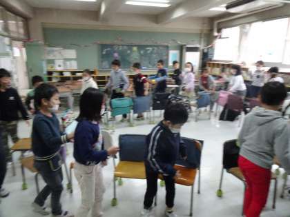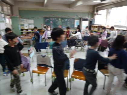 2学期末のお楽しみ会をやりました。学級会で内容を決め、原稿や飾りなどの準備をしてきました。ばくだんゲームやいす取りゲームをして、楽しみました。ばくだんゲームもいす取りゲームもいつ音楽が止まるかドキドキでした。2学期の思い出がまた1つ増えました。