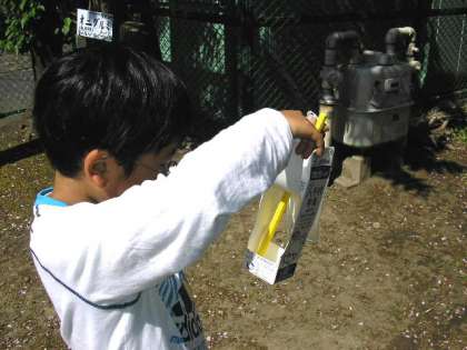 4年生はヘチマを育てています。一人一人が気温をはかり、植物の成長との関係を記録していきます。(4月28日)
