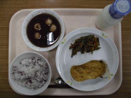 今日は1年間の健康と幸せを願って、お正月料理を作りました。そして、明日は鏡開きということで、デザートは「白玉しるこ」です。朝から小豆をことこと煮て作りました。