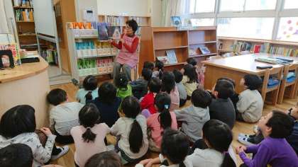 今年は子年です。司書さんが、ねずみのお話を読んでくださり、子どもたちは集中して耳を傾けていました。
