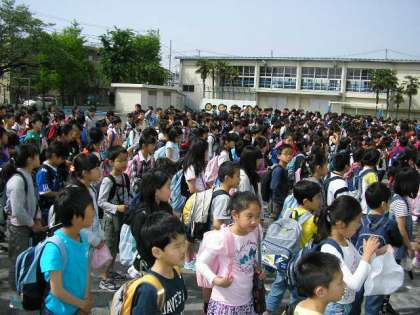 朝の健康観察を終え、みんな校庭に集まりました。晴天にめぐまれ、1日が楽しみになりました。(5月2日)