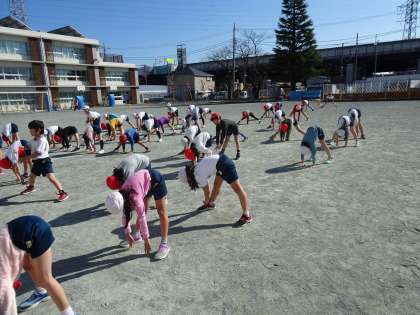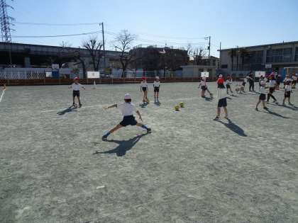 ボールを蹴るときはボールの真ん中をしっかりねらって、目標をしっかり見て蹴りました。だんだんとねらったところに蹴ったり、強く転がしたりすることができるようになりました。