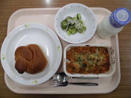 今日のラザニアは、いつものマカロニではなく、星形のマカロニを使っています!子供たちはすぐに気付き「今日お星さまだ!」と嬉しそうでした。