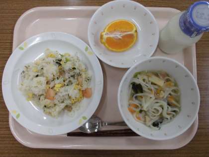 今日は「ベトナム」のオリ・パラ給食です!ベトナム風チャーハンの「コムチェン」と米粉の麺「フォー」を入れたスープを作りました。あまりクセのない味で食べやすく、子供たちもモリモリ食べていました!