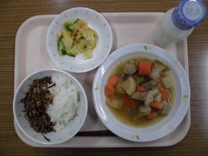 今日はおいしい和食の献立です。和食の日は特に野菜をたくさん使いますが、今日は白菜やだいこんなど冬野菜をたっぷり使いました。季節を感じるメニューです。