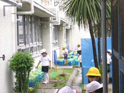 休み時間になると、自分のアサガオに水をやっています。(5月10日)