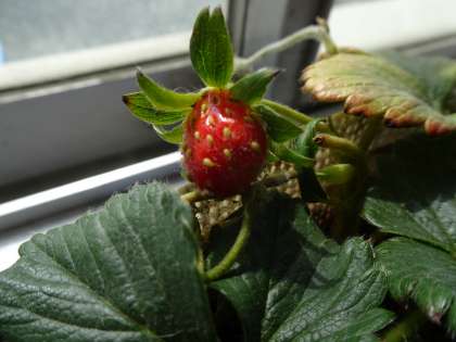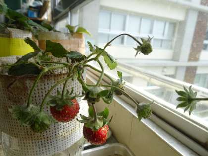 今日しょうかいするしゃしんは、みなさんがそだてているいちごです。一生けんめいおせわをして、みがなっている人もいますよ。