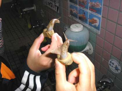 登校途中で、カタツムリを見つけました。これからクラスで飼育していきます。(5月13日)