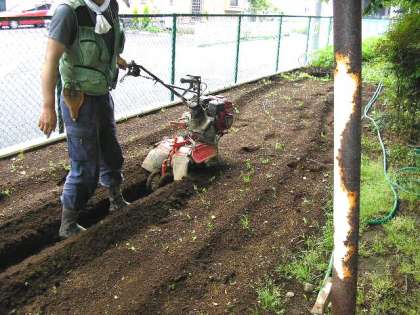 本校の労作活動では、地域の方のご協力をいただいています。中学年と高学年が作物の苗を植えるために、事前に近隣の方がうね作りや、子どもたちに苗植えや支柱の立て方の指導をしてくださいました。ありがとうございます。(5月13日)
