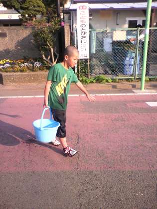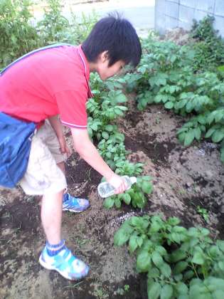 放課後、数名の男子が6年生の花壇に水やりをしていました。(5月18日)