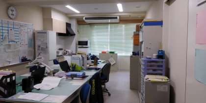 写真はすまいるルームの職員室です。先生たちの机がたくさん入っています。元気なみなさんに会えるのをどの先生も楽しみにしていますよ!