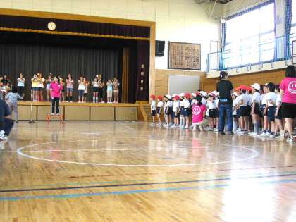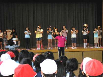運動会に向けて、金管バンドの演奏に合わせて元気に歌いました。(5月19日