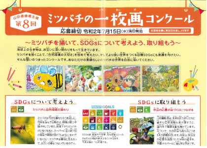 【図工】ミツバチの一枚画コンクール 公開日 2020/05/13 更新日 2020/05/13 図工 喜多見小学校の児童のみなさんへ 現在、募集案内が来ている会がコンクールのお知らせです。 興味のある人は、ぜひチャレンジしてみてください。 画用紙と応募用紙は、教材を取りに来校した時に、職員室でお渡し致します。 図画工作専科 渡邉 文樹 募集案内の細かいところまで見たい人は、「おうち学習」の中にある「専科(図工・音楽・外国語)」のページを見てください。